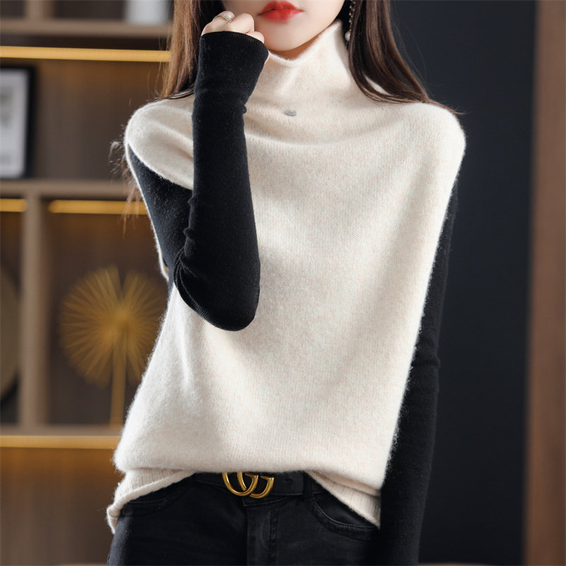 Cashmere knitted vest women's 2022 autumn and winter new high-neck sleeveless layered pullover sweater wool vest