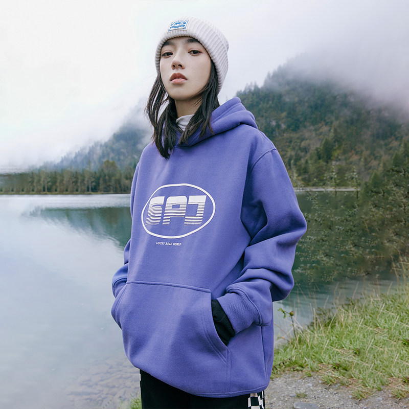 Jenny Space Agency Street winter sweater women's fleece student BF loose all-match pullover hooded printed jacket