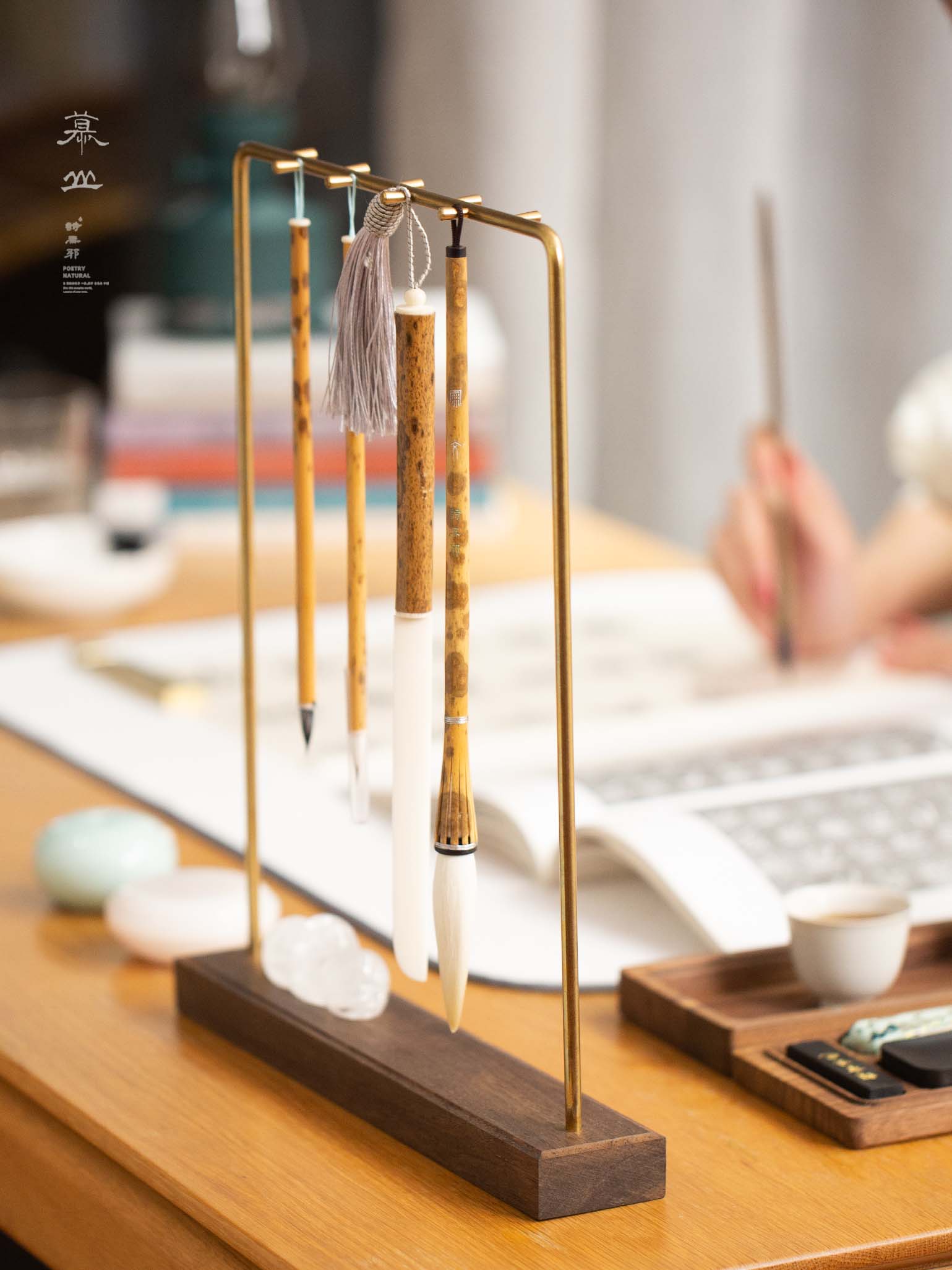(Mushan) Brass brush hanging pen holder solid wood ornament simple creative high-end storage poetry and artillery study