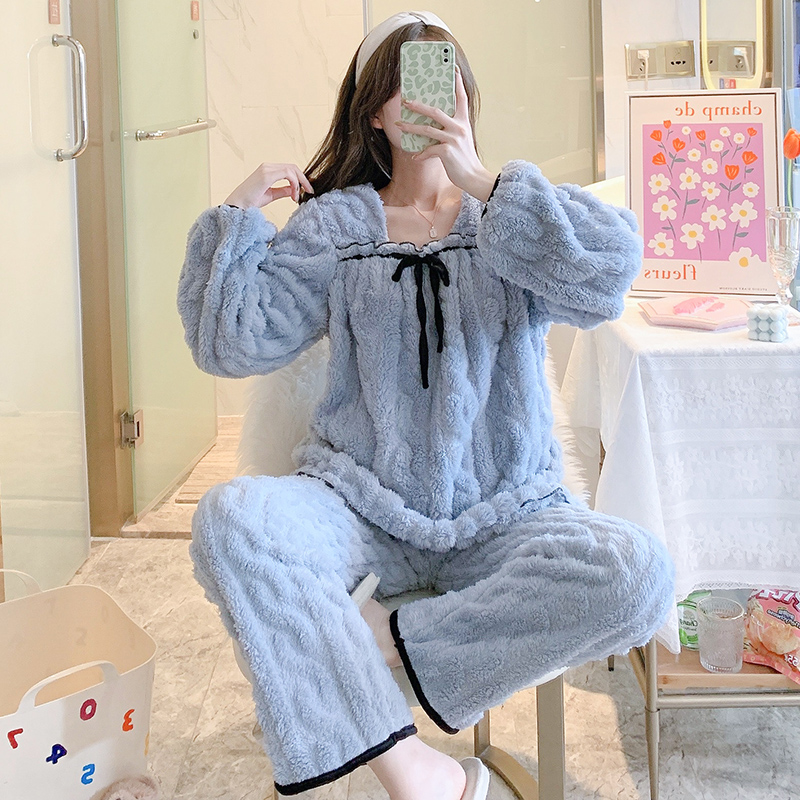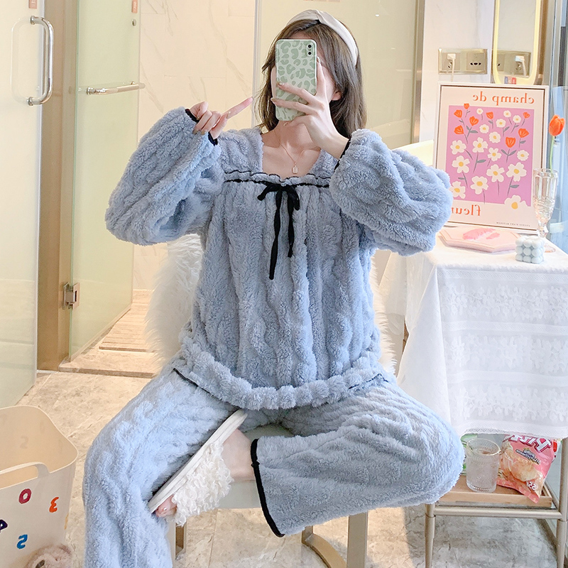 Fragrant and fragrant milk series ~ high JI with pint lead pyjamas woman autumn and winter sweet and gentle coral suede home suit suit