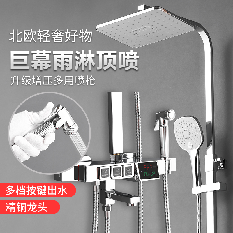A plated four-function hot and cold shower head B Plated Triple Function Hot And Cold Shower Head C Plated Four Functional Keys Hot And Cold Shower Head D Plated Four Function Buttons Thermostatic Shower Head E Plated Three Functional Hot And Cold Shower F