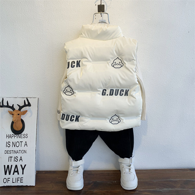 Small Yellow Duck Child Boy Autumn Winter Waistcoat Boy Winter Foreign Pie Thickened Kan Shoulder Vest Outside Wearing Jacket Waistcoat