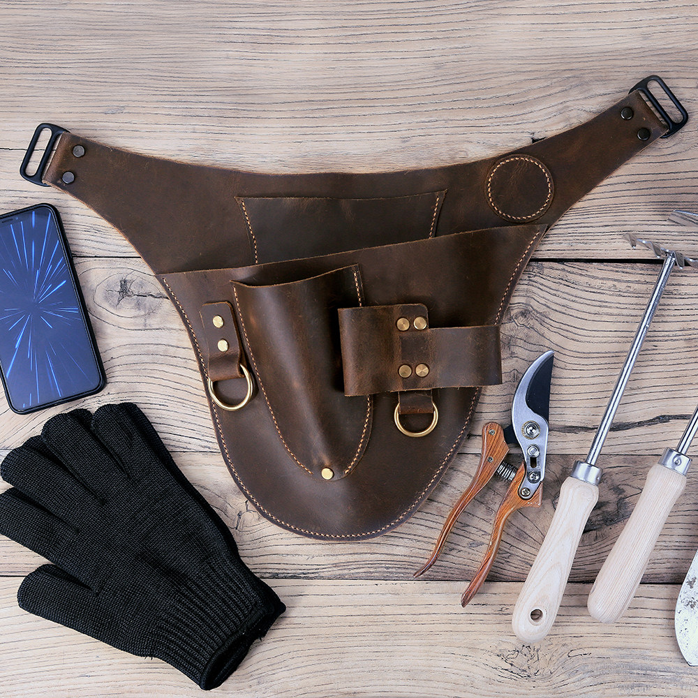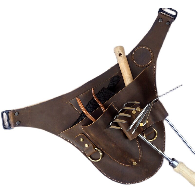 Handmade Head Layer Cow Leather Mad Mappy Dark Brown Pure Color Large Gardening Floral Flower Arrangement Tool Pocket L05GTL-Taobao