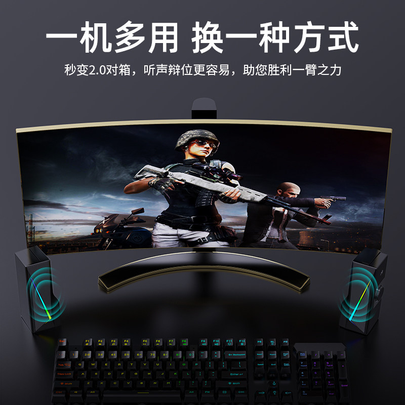HP HP computer audio desktop home desktop laptop desktop cable long soundbar with microphone speaker surround bass rgb luminous small multimedia speaker