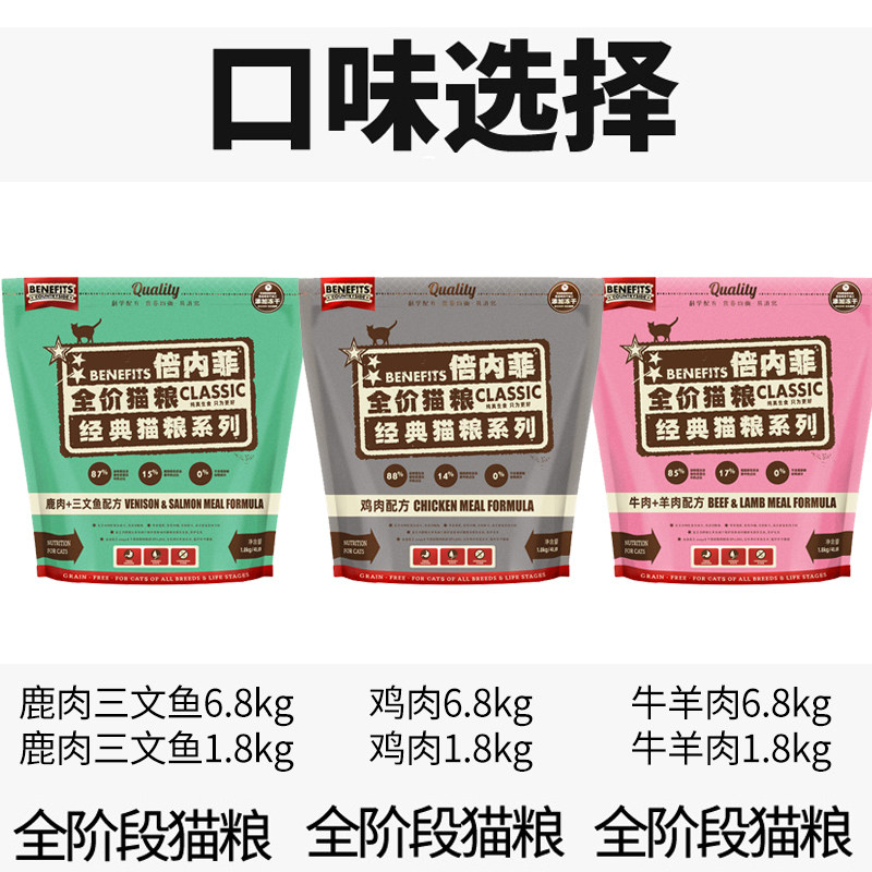 Benefi cat food natural grain-free freeze-dried chicken beef salmon red meat 6 8kg adult cat nutrition 1 8kg - Taobao
