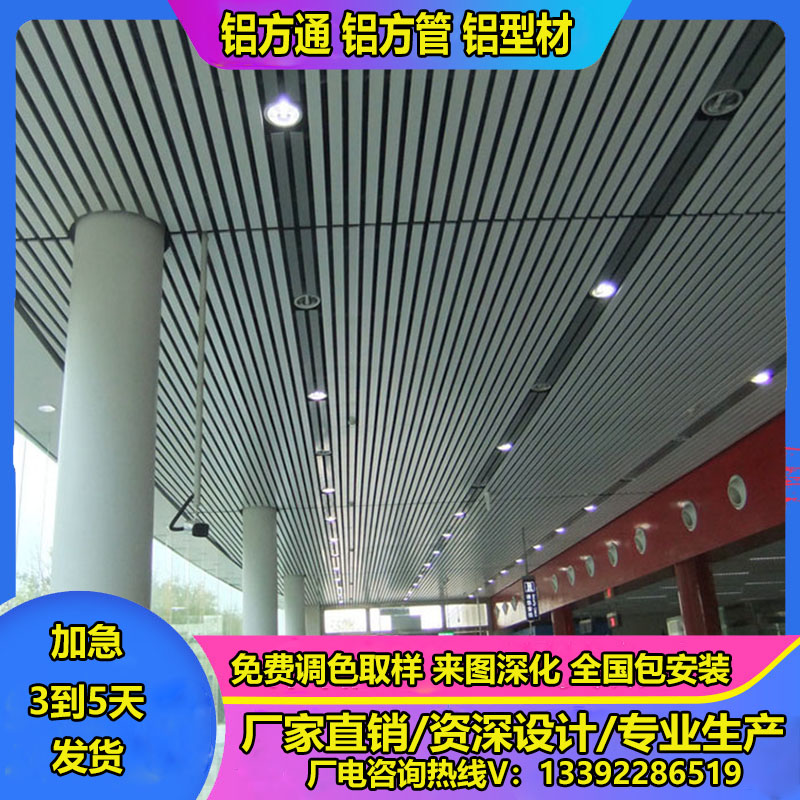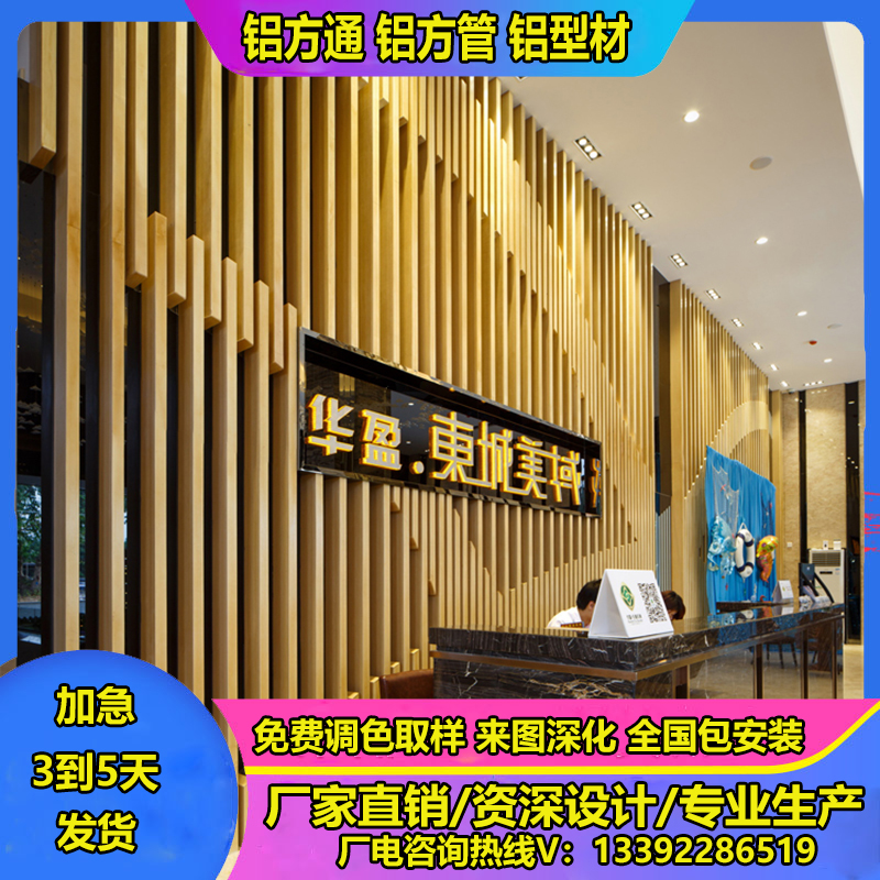 Factory U-shaped arc aluminum square pass suspension ceiling wood grain square tube screen partition shape grille profile background wall