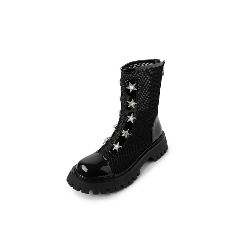 Thick Bottom Martin Boots Woman Thin Paint Leather Sandals Boots Stars Water Drill Boots 2022 New Summer Hollowed-out Breathable Mesh Boots