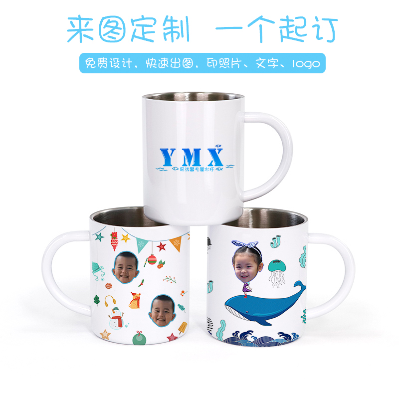 To map custom thickened stainless steel water cup children's photo custom lettering logo pet gift enamel mug