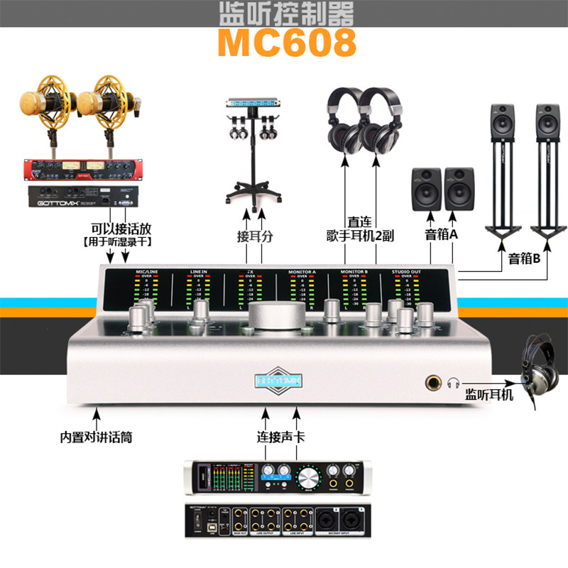 Gottomix MC608 Studio Monitor Controller with Intercom Talk and Put Ear Divide stereo