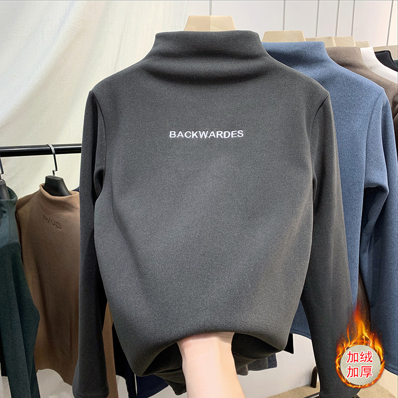 Half-height collar with lean undershirt female winter lap with autumn and winter foreign velvet thicken thickened 2021 New grinders clothes