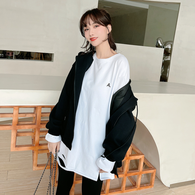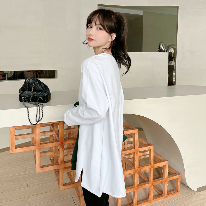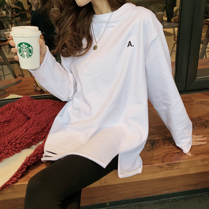 JUSTCC Kaka Women's Official Flagship Loose A-line Embroidery Brushed Plus Velvet Big White T-shirt Net Red Same Style Top
