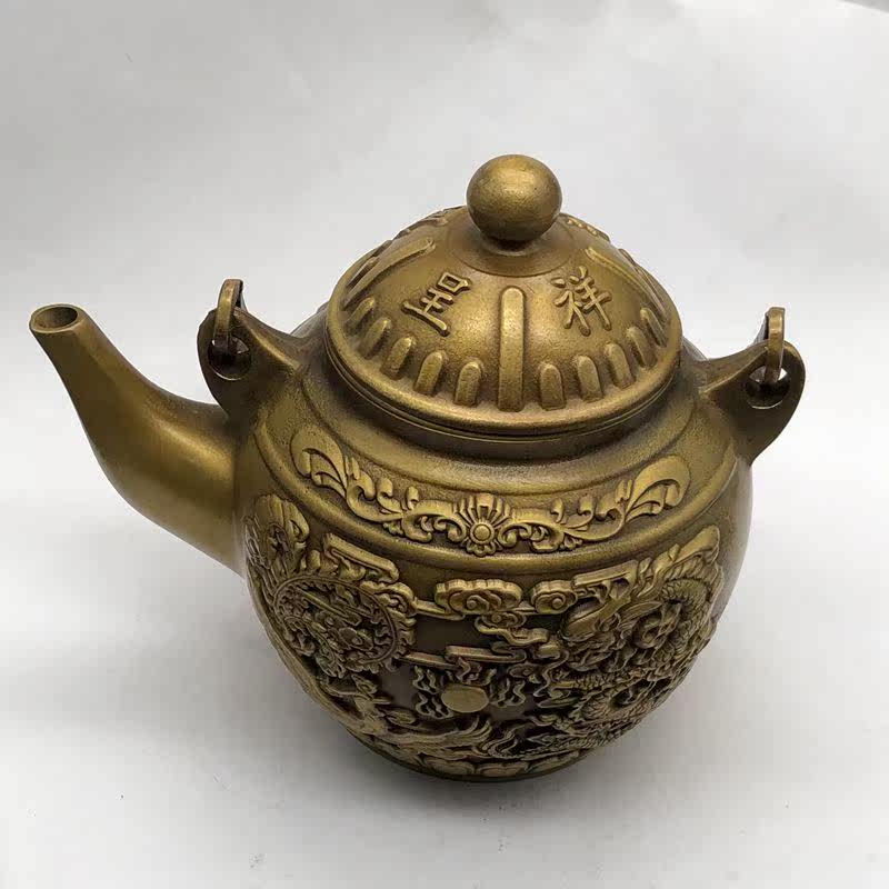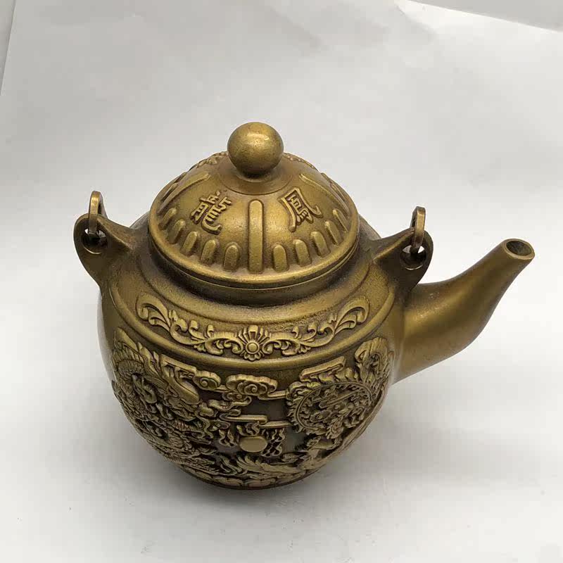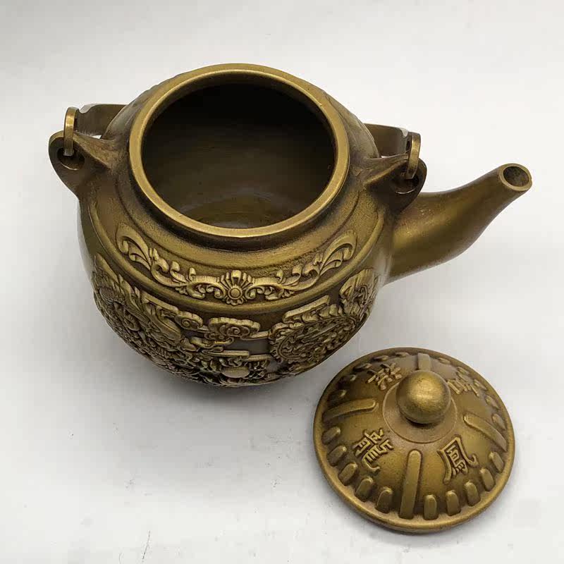 Antique antiques Miscellaneous dragon and phoenix Chengxiang copper pot lifting beam Kettle tea kettle home Copper craft decoration