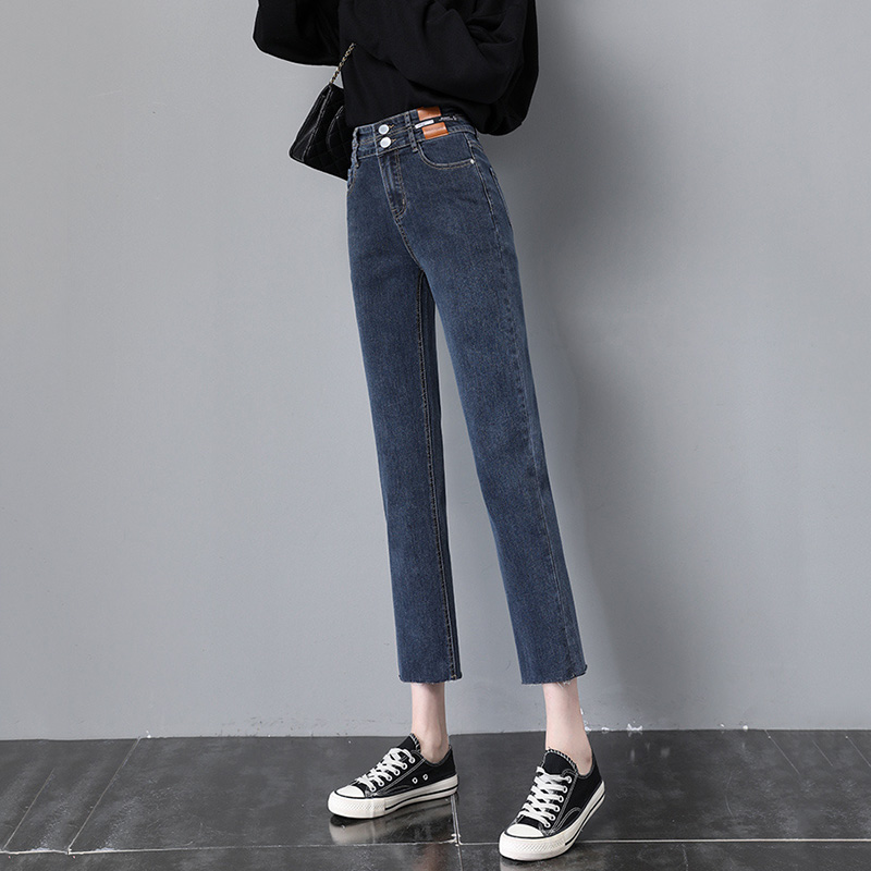 Jeans Woman 2021 Spring Autumn New Widening High Waist Display Slim Small Sub 90% Wool Side Straight Tube Smoke Pipe Pants