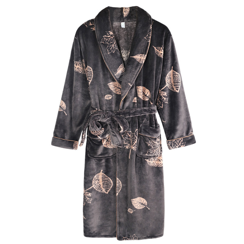 South Pole sleeping robe male autumn and winter flange suede thickened warm large size bathrobe winter coral suede long version bathrobe pyjamas