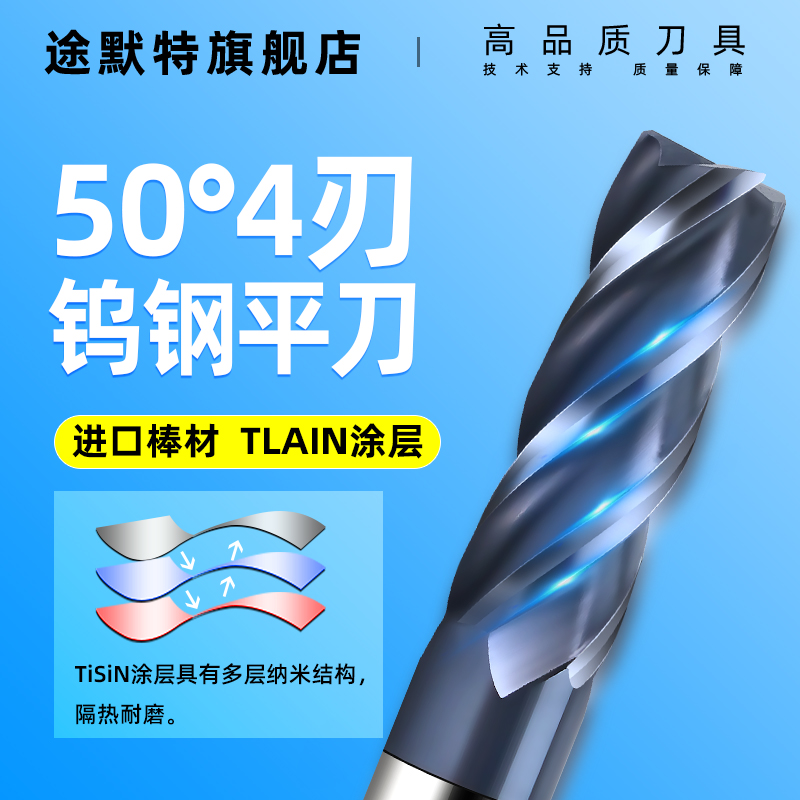 Tumut HRC50 tungsten steel end mill 4-blade flat-bottomed nano-coated alloy knife machining center milling cutter