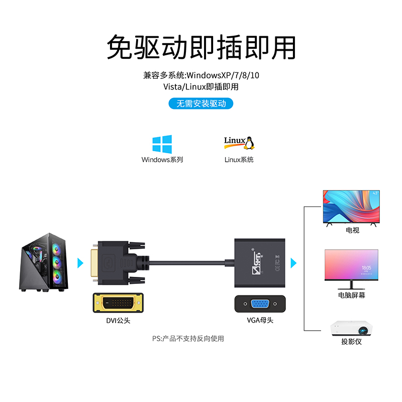 Three Fort DVI transfer VGA adapter DVI24 1 computer display card connection projector TV display