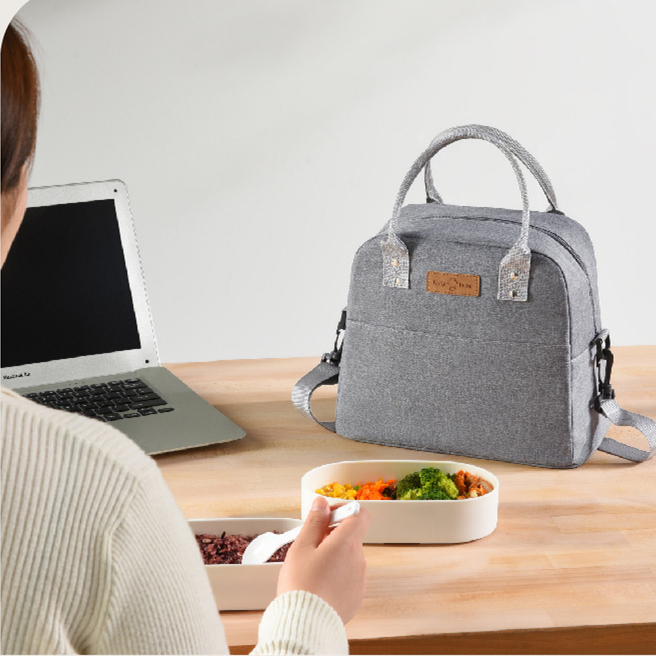 Messenger aluminum foil student lunch box bag handbag insulation bag bento box bag office worker canvas hand carry rice bag