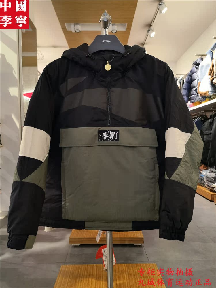 China Li Ning Cotton Men's 2021 Winter New Retro Casual Hooded Windproof Warm Jacket AJMR035