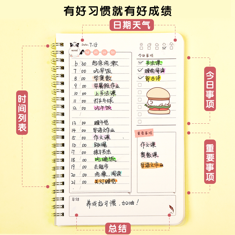 Daily Plan for students to self-discipline card summer study task list time management efficiency manual good habits to develop college student examination schedule planner notebook