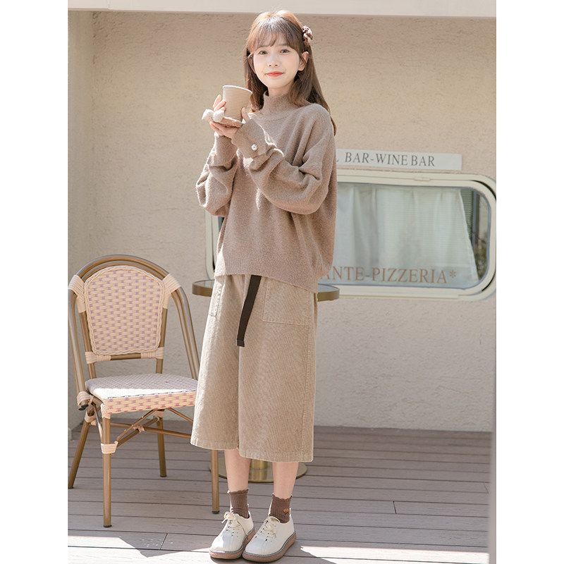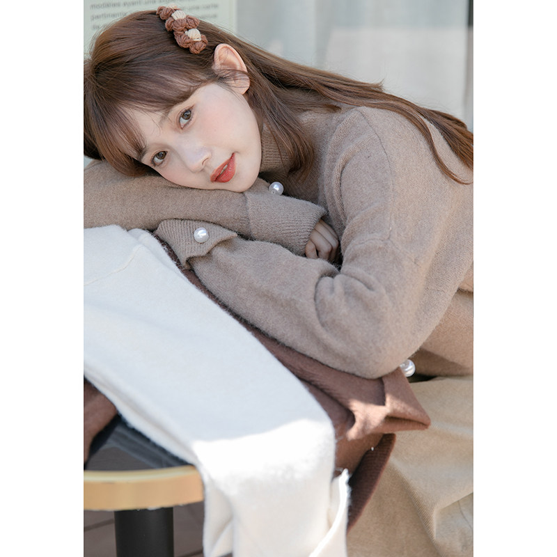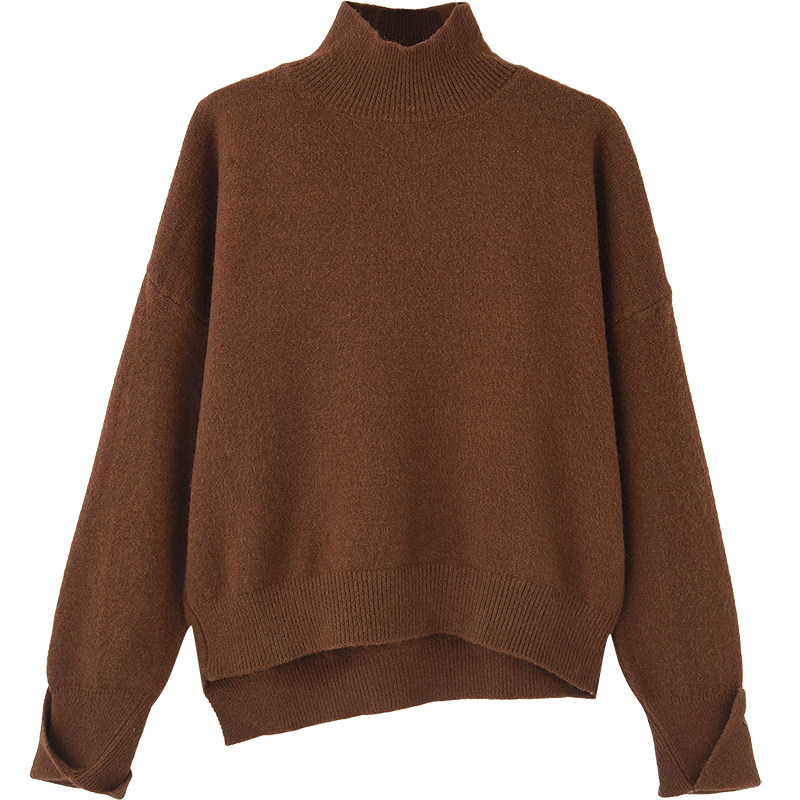Semi - collar loose head sweater in autumn and winter 2021 new pie pure color tightness with a knitting shirt