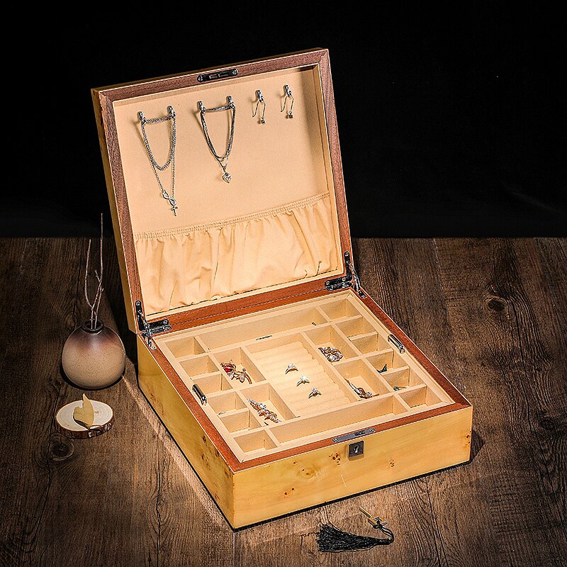 Piano paint jewelry box solid wood high hardness baking paint double-layer solid wood with lock storage box wedding jewelry collection box