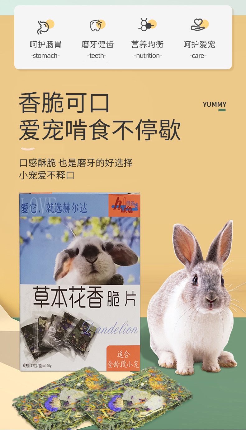 Flowers and herbs Pu chicory toast tablets balanced nutrition rabbit chinchilla guinea pig hay to dispel fire and improve immunity 2 tablets