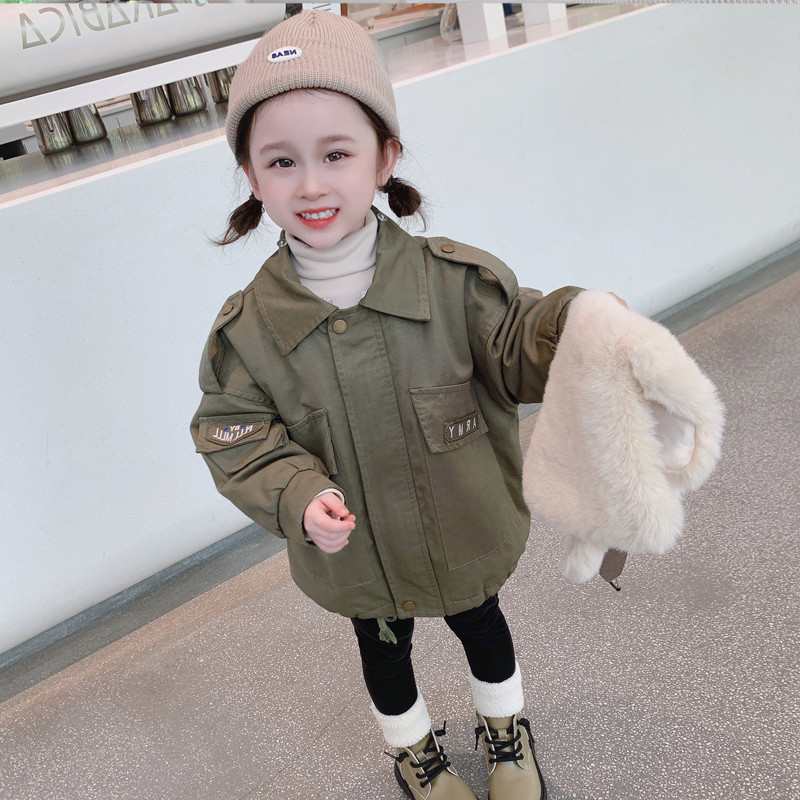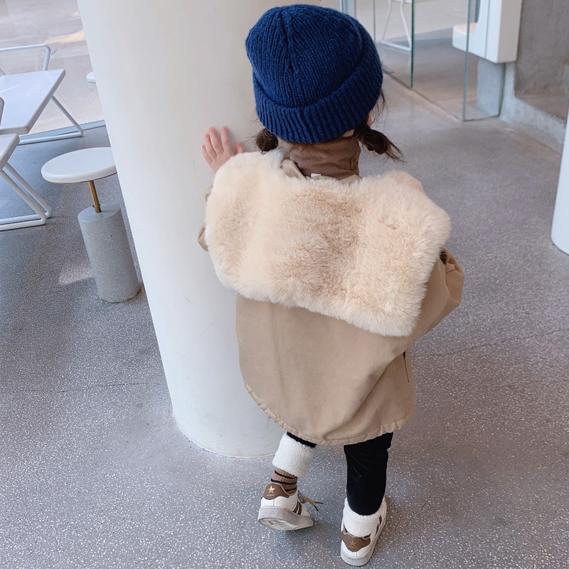 OKAIDI French girls' Parker cotton coat plus velvet 2022 Western style winter clothing medium and long version thickened coat children's cotton coat