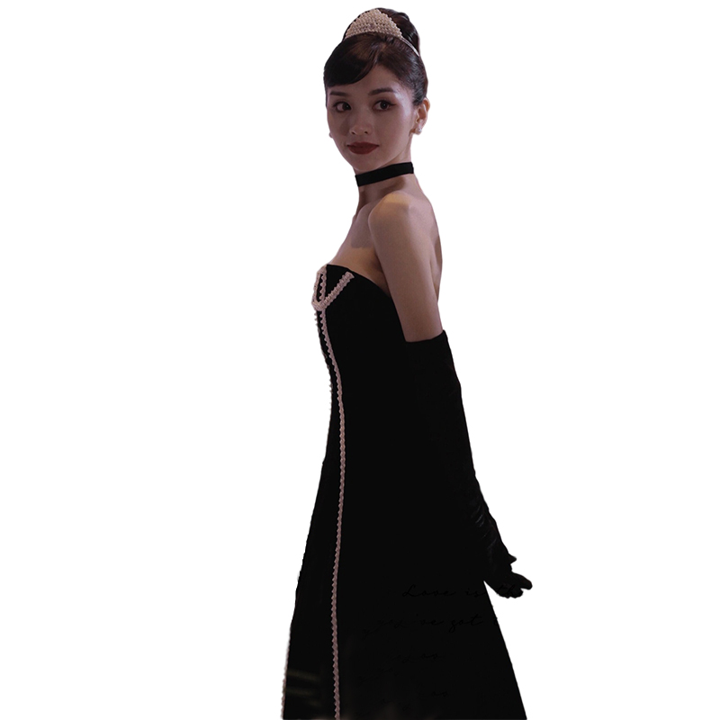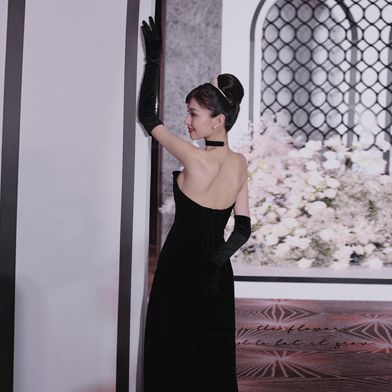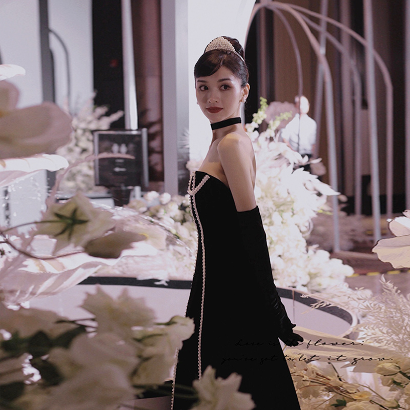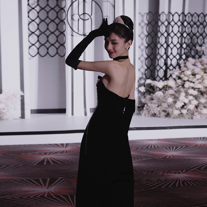 Black tube top evening dress female celebrity banquet high-end luxury dress temperament elegant backless bride toast clothing