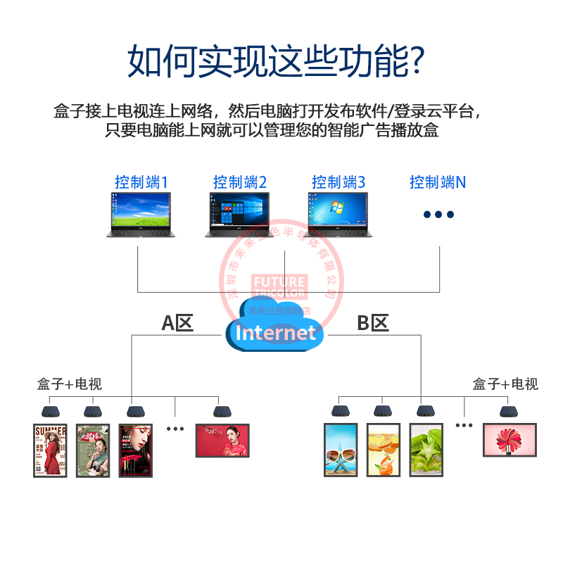 4K advertising player playback box horizontal and vertical screen Android split screen remote control multimedia information release system terminal