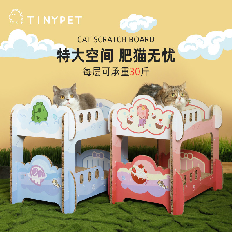 Tinypet ditire plan for upper and lower bunk with double-decker cat-nest integrated abrasion-resistant scrap can replace the large number
