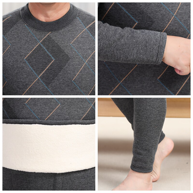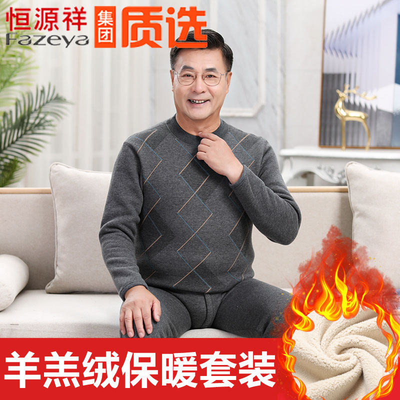Hengyuan Color Lamb Suede Middle Older Warm Underwear Men with thick plus velvet suit Autumn Short Men Half-collar
