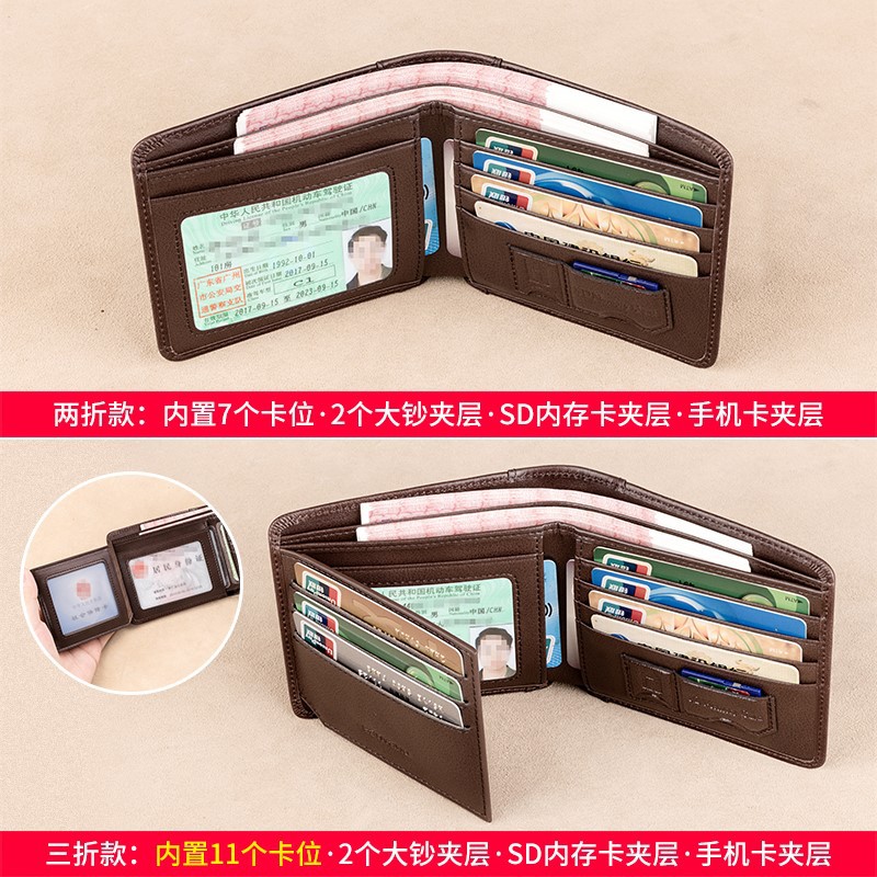 Brown - two folds (oil wax top layer cowhide) brown - three folds (oil wax top layer cowhide) black - two folds (oil wax top layer cowhide) black - three folds (oil wax top layer cowhide) coffee
