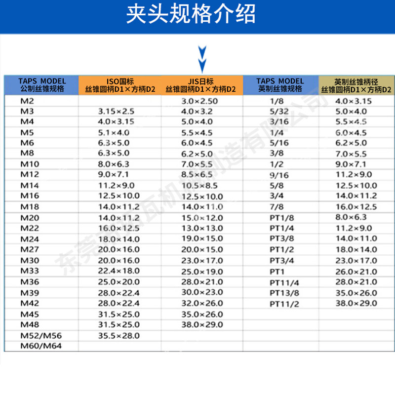 Electric servo tapping machine clamping head cylinder clamping national standard Japanese mark GT24GT12 converting head hydraulic rod tapping machine accessory