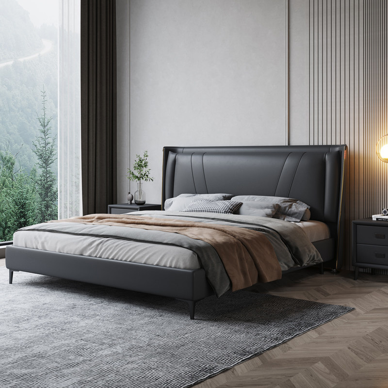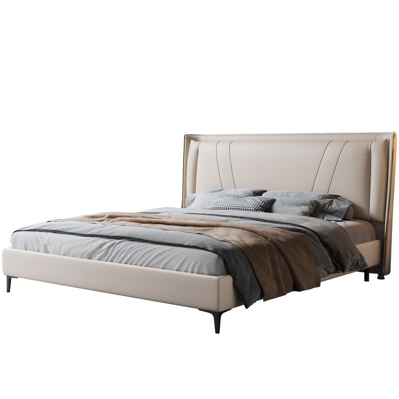Italian light luxury leather bed 18m double bed modern minimalist 15m soft bed master bedroom pneumatic storage wedding bed