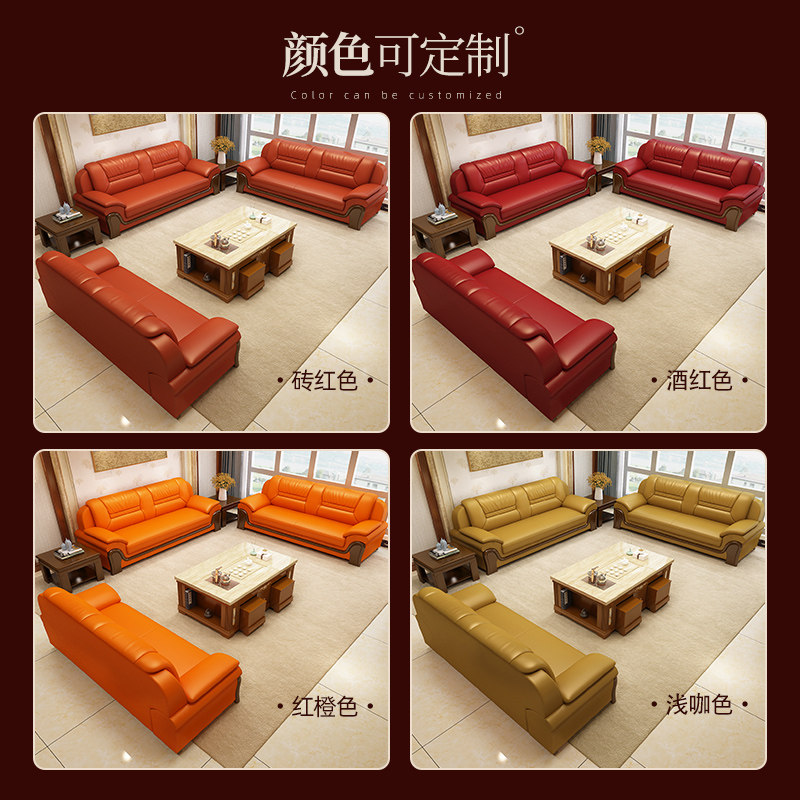Office Sofa Brief Modern Chinese Business Guest Room Talks Real Leather Sofa Trio Bits Tea Table Combo Suit