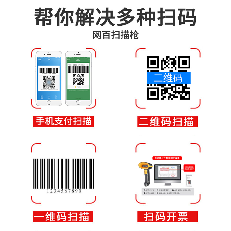 Wangbai WB230 scanning gun microchip dot matrix QR code WeChat billing Chinese cable agricultural materials veterinary drugstore 2015a chasing plastic code scanning gun supermarket medical insurance card mobile phone payment scanner