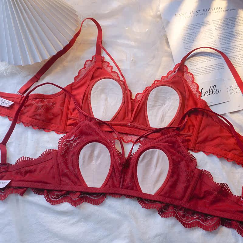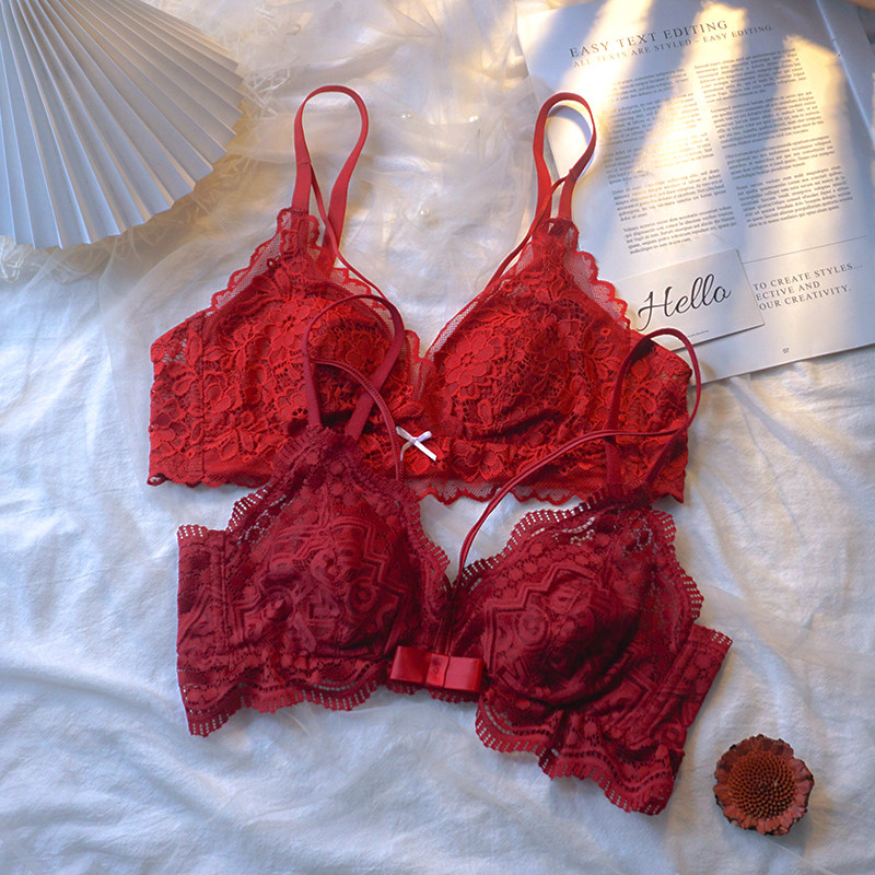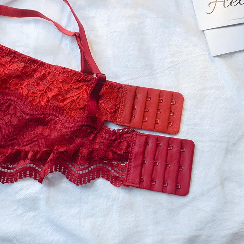Red lingerie suit This year gathers no steel ring to be a tiger year Sexy lace big chest exalted little text bra thin