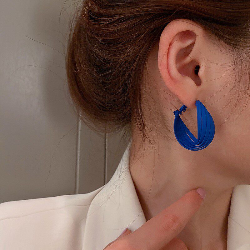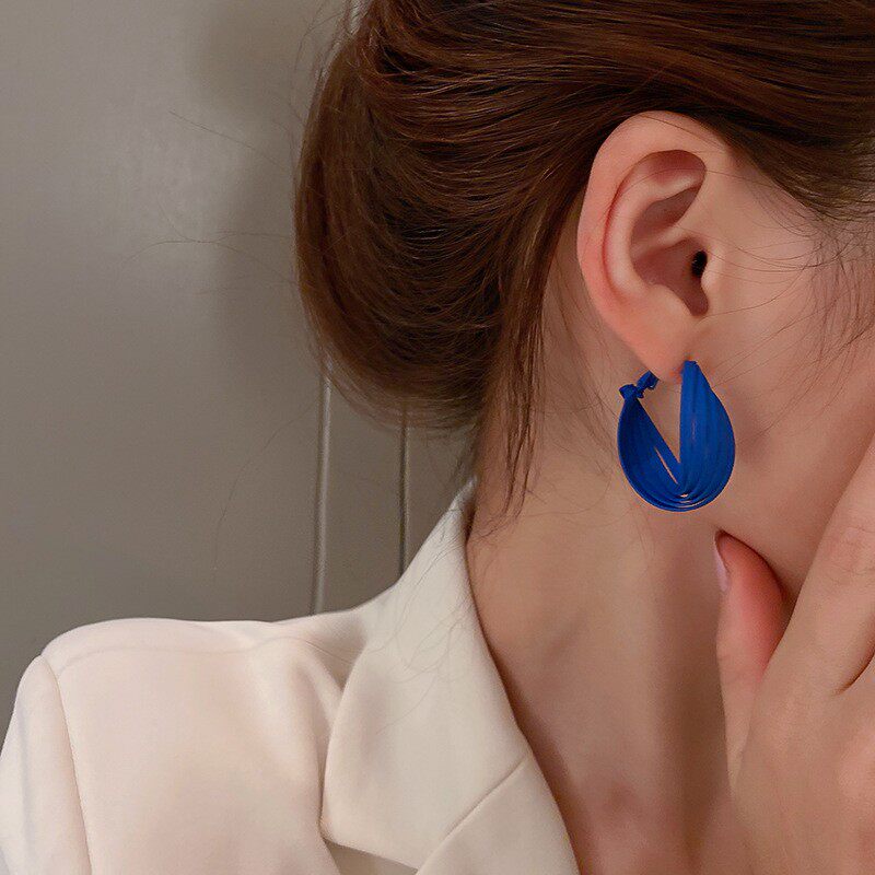 Autumn and winter 925 silver needle Klein blue earrings ins wind twist earrings niche design sense net red ear needle earrings female