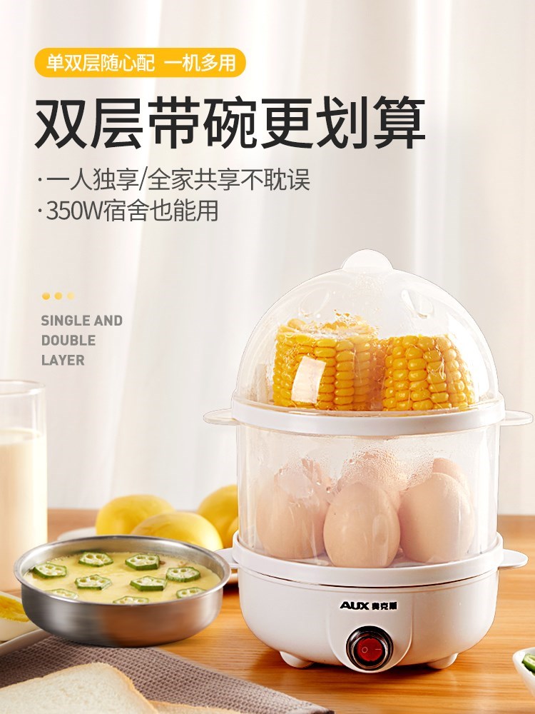 Boiled Egg Steamed Egg Steamer Double automatic power off Home Small Egg Mini Multifunction Steam Pan Breakfast machine
