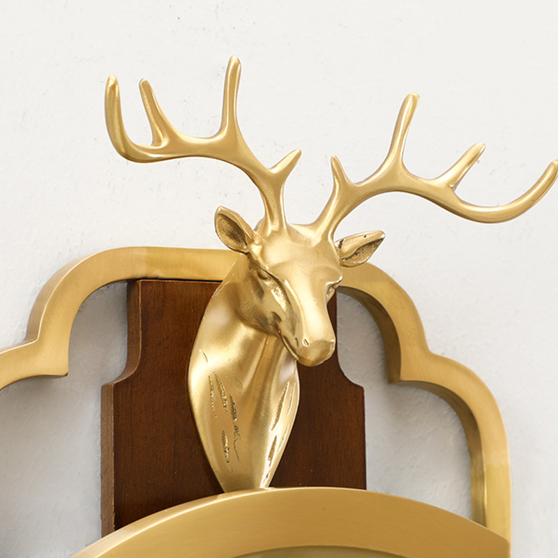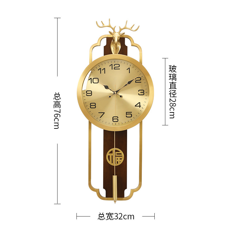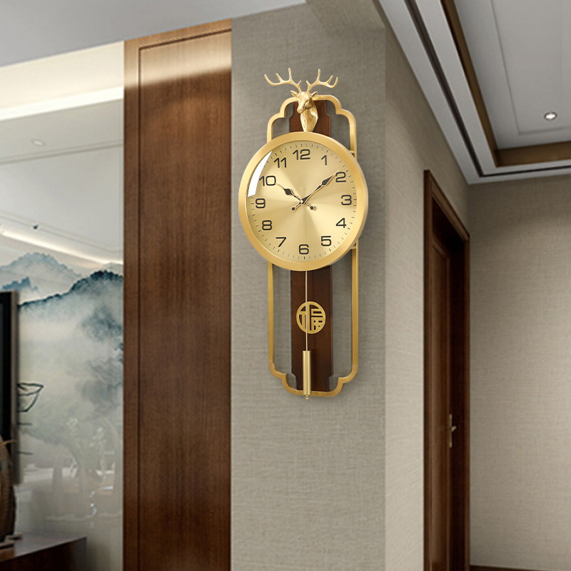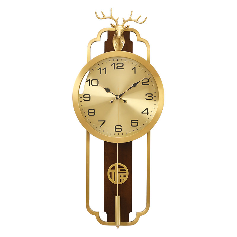 New Chinese muted hanging bell brass deer head clock living room wall decoration hanging bell creative solid wood perpetual calendar clock-Taobao