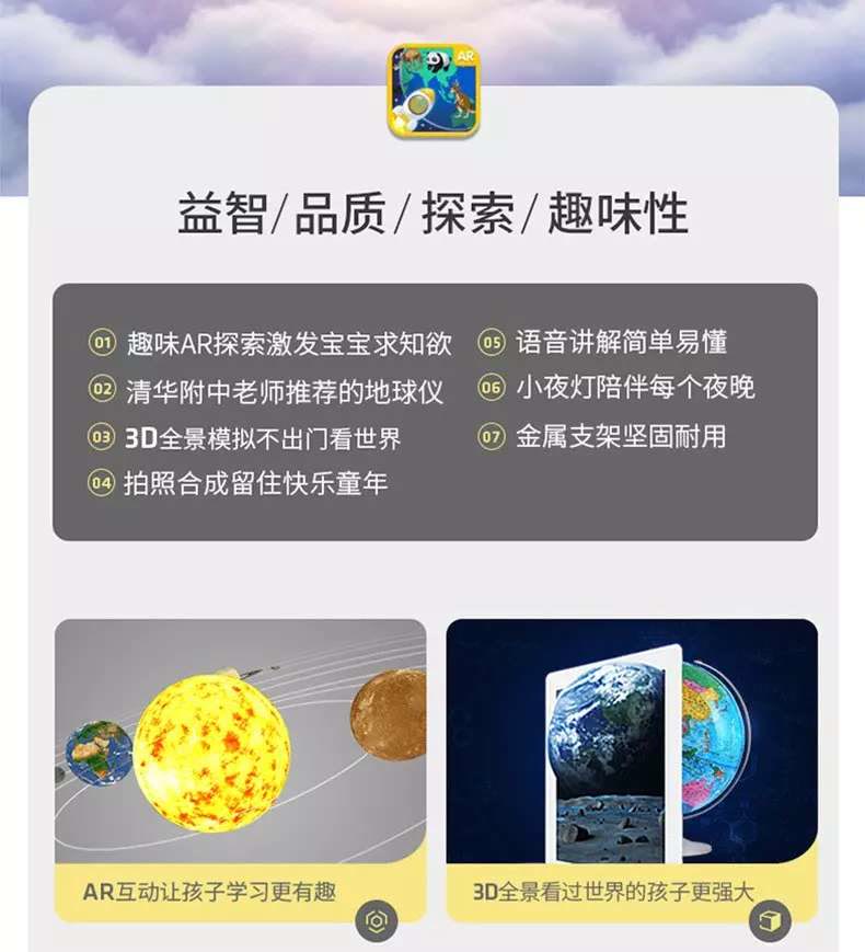 Jianzhe AR globe ornaments Manke intelligent high-definition 3d three-dimensional suspension students and children teaching version supplies Balin