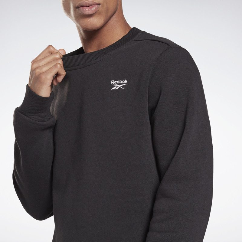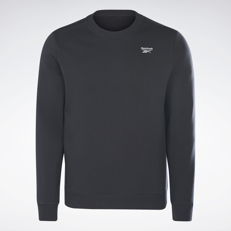 Reebok Official Men's GR9199 Black Indoor Fitness Training Thick Crewneck Long Sleeve Sweatshirt