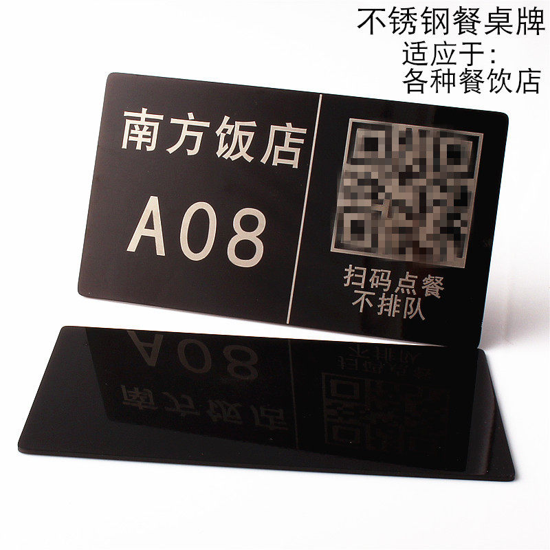 2D code order meal code flat stainless steel table card custom LOGO restaurant payment code tableboard tableboard tab