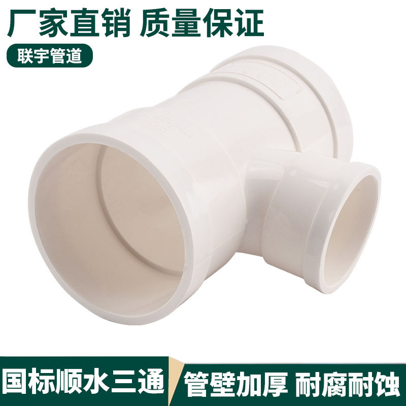 PVC drainage equal diameter positive three-way downpipe water joint 50 55 9 82 6 160 250 315 400