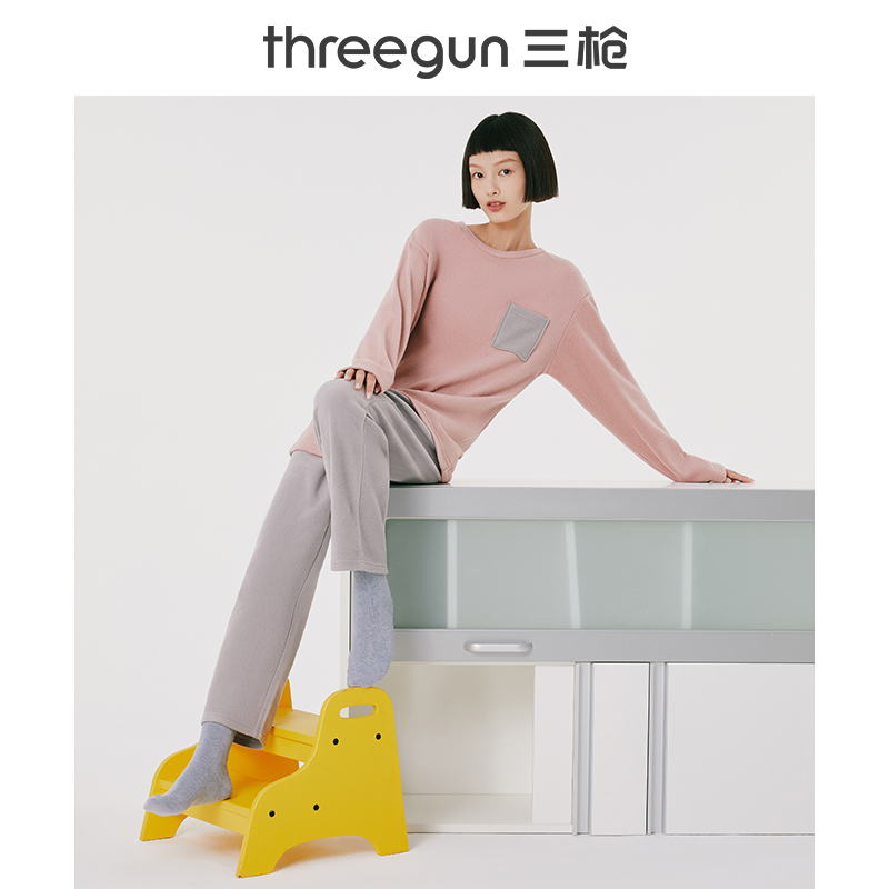 Three-gun underwear official flagship store pajama pants set men and women 2022 autumn and winter polar fleece can be worn outside casual home clothes