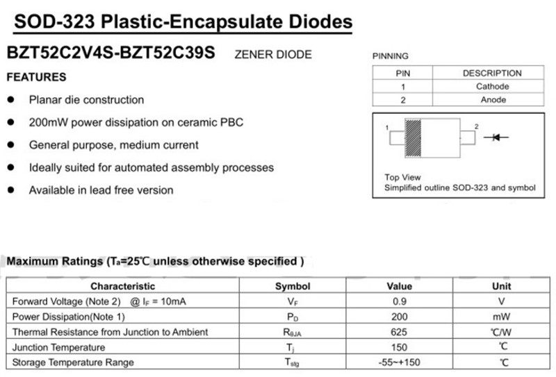 0805 voltage-stabilizing diode BZT52C9V1S online version printed WE SOD-323 patch diode 9 1V