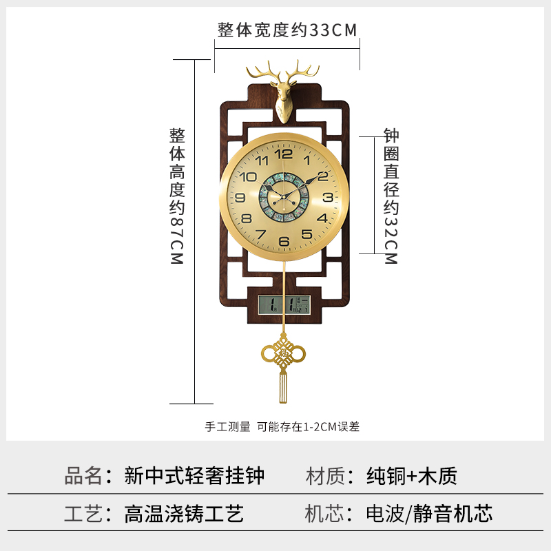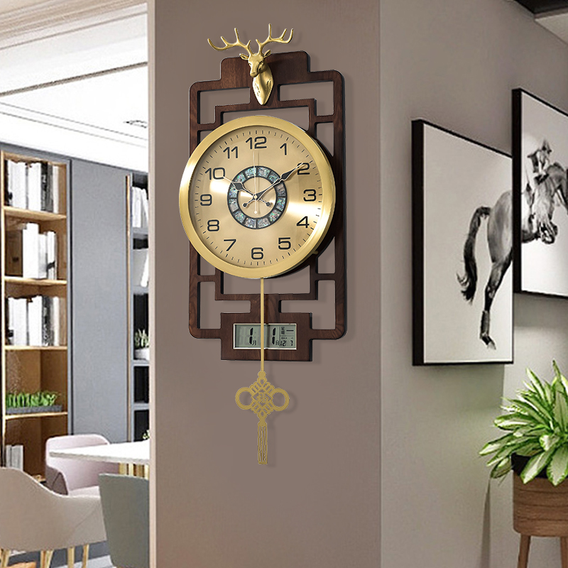 New Chinese hanging clock Living room Home Fashion watches Light extravaganza Atmospheric Perpetual Calendar Book House Decoration Hanging Wall Pure Copper Clock