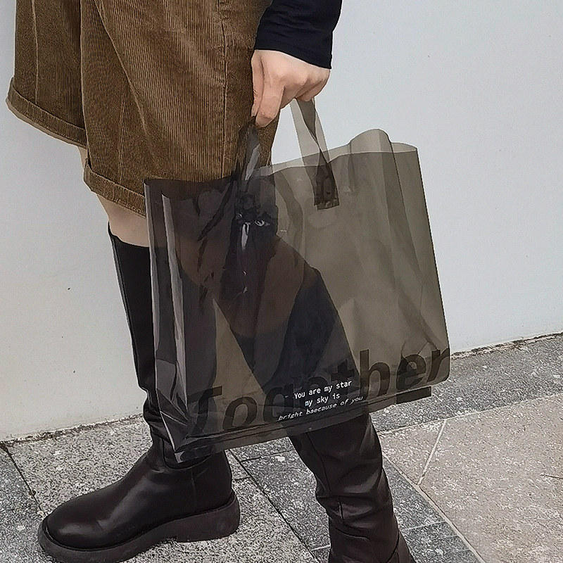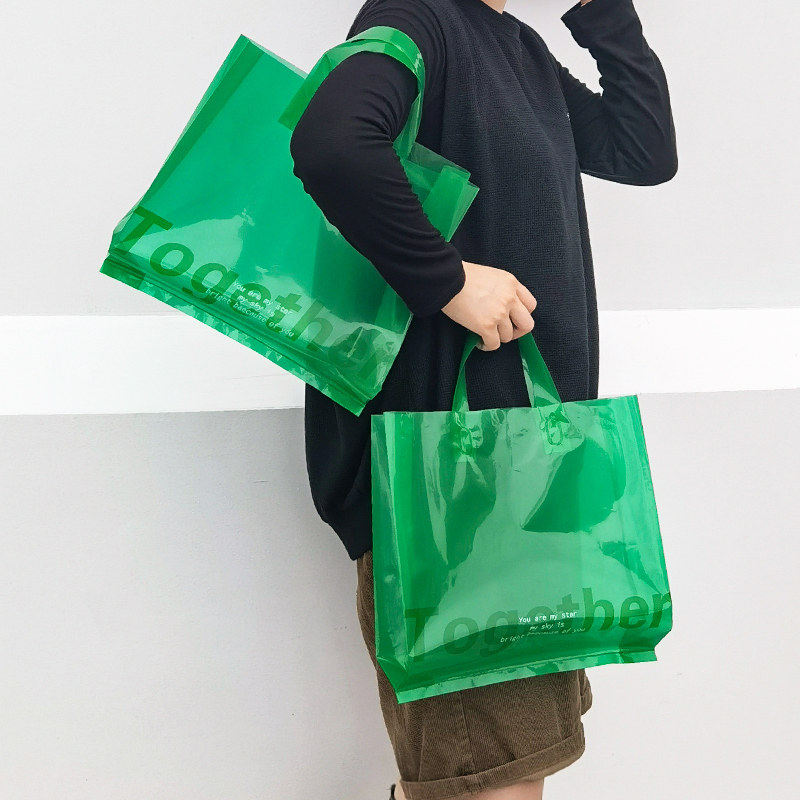 BV Green Translucent Plastic Hand Bag Cold Tone Packing Bag Clothing Gift Shop Practical Good Looking To Make Hand Carry Bag