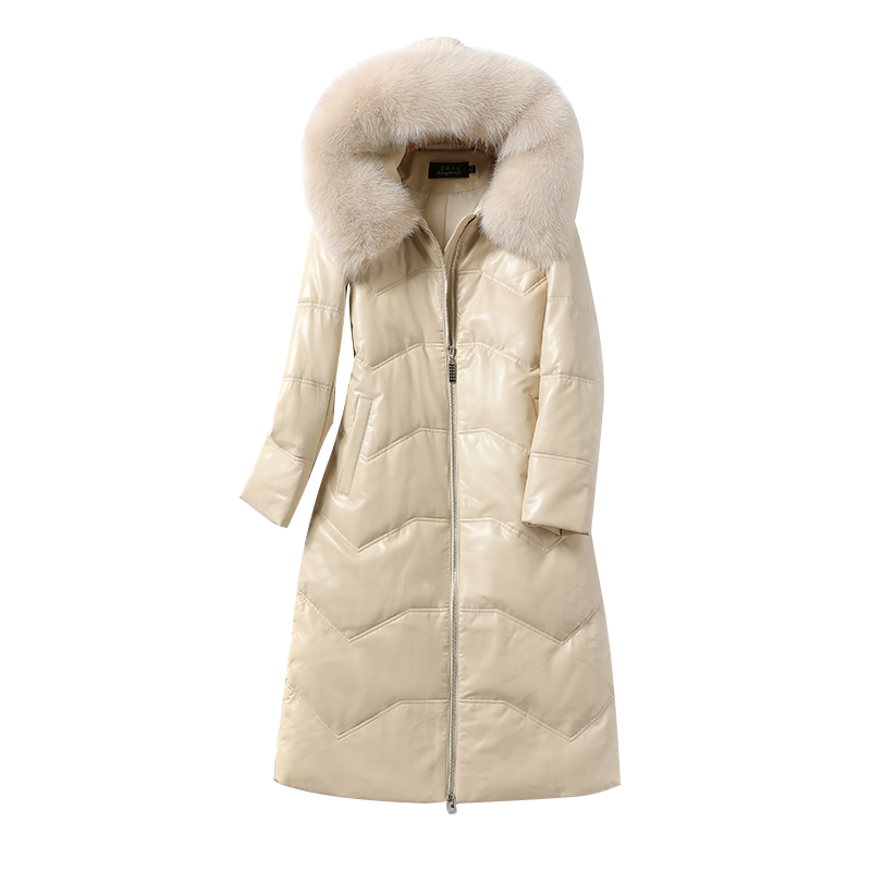 Leather plums female midfielders with cap fox fur sheep leather Henning 2021 Anti-season new white duck suede genuine leather women's leather clothing