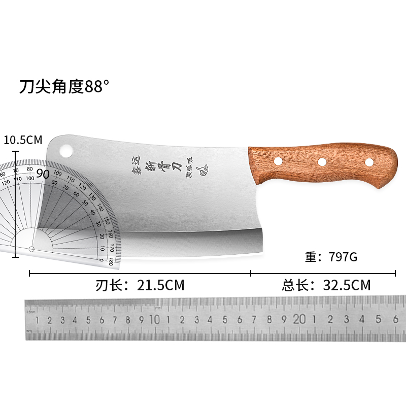 Heavier and thicker bone cutter (chopping damage package) Old-fashioned iron kitchen knife (high carbon steel sharp about 560g)